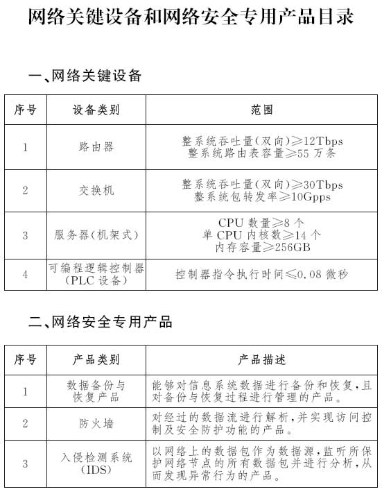 附件:网络关键设备和网络安全专用产品目录