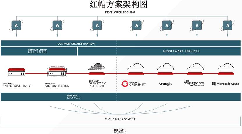 ——如今,围绕OpenShift,红帽已经具备完整的解决方案,涉及安全产品、云管理组件、容器解决方案、中间件、Ansible产品等,帮助企业的数字化转型,同时推动自身向“混合云解决方案提供商”迈进。