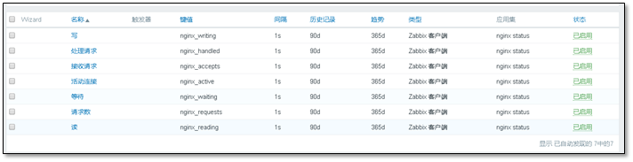 [root@m01 ~]# zabbix_get -s 172.16.1.7 -p 10050 -k "nginx_waiting" 0 [root@m01 ~]# zabbix_get -s 172.16.1.8 -p 10050 -k "nginx_waiting" 0 [root@m01 ~]# zabbix_get -s 172.16.1.9 -p 10050 -k "nginx_waiting" 0
