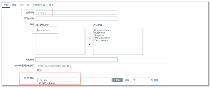 添加新的主机,注意使用snmp接口
