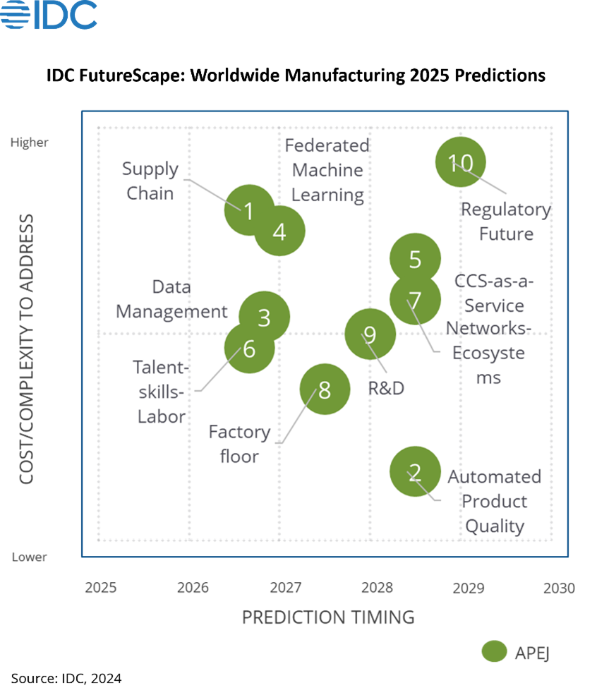 着眼于该地区的这些市场动态和技术采用趋势,IDC 发布了《FutureScape 2025 年全球制造业预测 – 亚太地区(不包括日本)影响》报告,为组织决策者提供关于技术作为可行推动因素的可行投资计划。