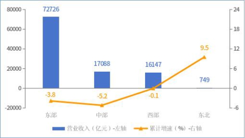 一季度,规模以上电子信息制造业东部地区实现营业收入26911亿元,同比增长12.9%;中部地区实现营业收入6170亿元,同比增长11.1%;西部地区实现营业收入4586亿元,同比下降1.3%;东北地区实现营业收入206亿元,同比增长4.3%。