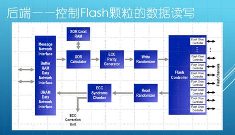 · 后端Flash控制器,通过一定数量的通道连Flash颗粒,