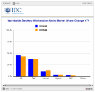在服务器出货量方面,惠普在2015年第二季度仍然是全球领导者,与上年同期相比增加了2.5%。惠普全球服务器出货量份额为21.7%,这一数字比2014年同期下降了1.2%。