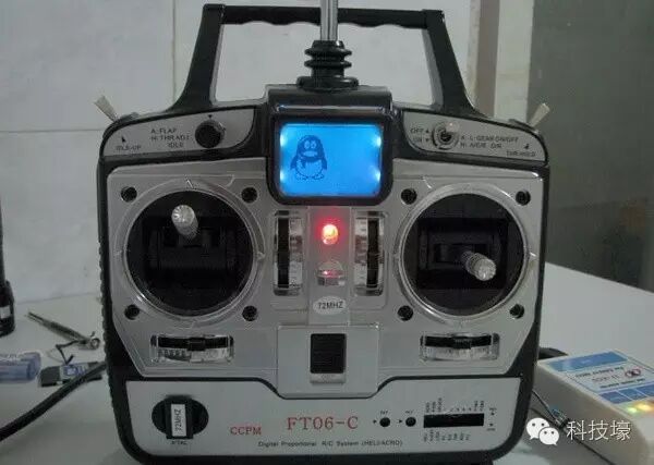 17.整机完成效果图,好了,机架完成了。接下来是遥控器的改造时间 , 买了个又便宜又大块的FT06-C,准备先把6通改到8通,增加两个比例通道,并且配上LCD液晶屏,用来显示控的相关参数。控的高频头还留用,PPM编码板整个换掉它。