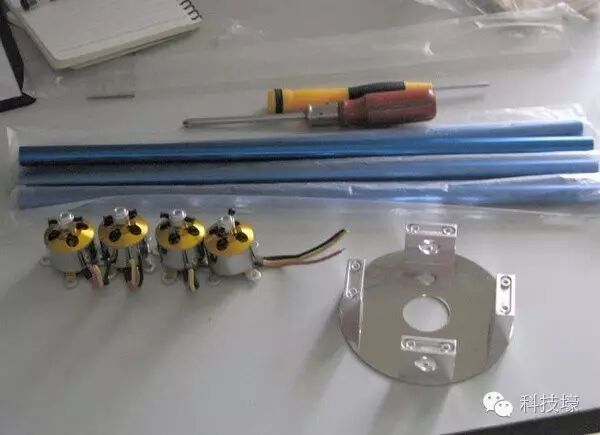 2.费了九牛二虎之力,最后改造一个拆手机用的起子,搞定了。机架打算用现有的电直尾管和管座配上硬盘片构成,电机用新西达2212 KV930,两正两反的桨用口碑不错的德国EPP1045 。