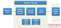 图3显示了Tachyon Master的结构,其主要功能如下:首先,Tachyon Master是个主管理器,处理从各个Client发出的请求,这一系列的工作由Service Handler来完成。这些请求包括:获取Worker的信息,读取File的Block信息, 创建File等等;其次,Tachyon Master是个Name Node,存放着所有文件的信息,每个文件的信息都被封装成一个Inode,每个Inode都记录着属于这个文件的所有Block信息。在Tachyon中,Block是文件系统存储的最小单位,假设每个Block是256MB,如果有一个文件的大小是1GB,那么这个文件会被切为4个Block。每个Block可能存在多个副本,被存储在多个Tachyon Worker中,因此Master里面也必须记录每个Block被存储的Worker地址;第三,Tachyon Master同时管理着所有的Worker,Worker会定时向Master发送心跳通知本次活跃状态以及剩余存储空间。Master是通过Master Worker Info去记录每个Worker的上次心跳时间,已使用的内存空间,以及总存储空间等信息。