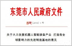 今年市政府一号文聚焦机器人产业 2016年东莞市政府一号文定了,聚焦的是机器人产业。在今天(1月26日)上午召开的东莞市政府一号文新闻发布会上,副市长贺宇向新闻媒体发布了《关于大力发展机器人智能装备产业打造有全球影响力的先进制造基地的意见》的相...