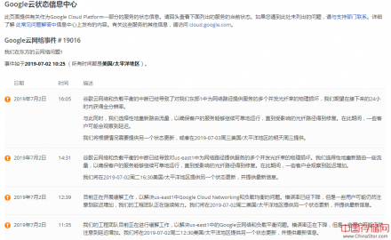 谷歌云计算东部一区us-east1出现网络和负载均衡问题,google称是部分光纤收到了物理损坏所致。部分用户仍会有网络访问延迟感。...