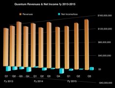 昆腾一年前是亏损240万美元,所以今天的利润是一个不错的转身2015财年前三季度的横向扩展存储收入同比增长接近60%,其收入2700万美元。...