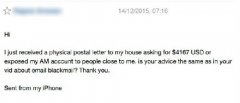 有人使用美国邮政局向Ashley Madison用户投递了敲诈勒索信件,他们在信件中威胁,若想自己的信息不被曝光,那么必须要向他们支付赎金。