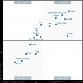 Gartner最近发布了其 2019年分布式文件系统和Object Stora ge 魔力象限,DEll EMC、IBM、Scality、Qumulo处于领导者地位。...