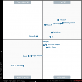该魔力象限针对归档市场,企业信息存档(EIA)软件结合了用于存档用户消息传递内容的产品和解决方案。...
