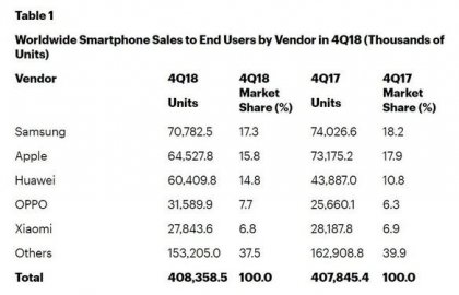 2018年第四季度,华为销售了超过6000万部智能手机,并实现了跨越式增长,达到了37.6%。...