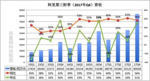 阿里巴巴2018年Q3营收达830.28亿元,同比增长56%,这也是阿里连续第七个季度在营收增长上保持超过50%。...