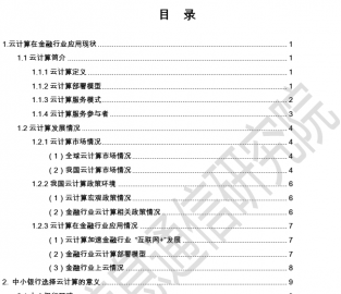 中小银行上云白皮书(2018年)深入分析中小银行上云的优势和必要性,剖析中小银行上云过程中应该考虑的关键点并给出专业建议,重点研究中小银行为什么要选择云计算服务、如何选择云计算服务和如何应用云计算的问题,供中小银行和云计算行业相关从业者及研究人...