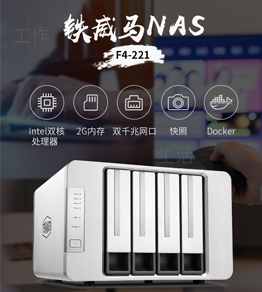 铁威马F4-221是一款性价比很高的小型商用/家用4盘位NAS网络存储产品。采用Intel 双核处理器,高达 2.0 GHz,支持72TB(18TBX4)存储空间,读写速度高达118MB/S。自带多种备份工具,可通过快照、加密、T-RAID等方式保护数据,抵御勒索病毒。适合应用于家庭多媒体娱乐与小型办公。